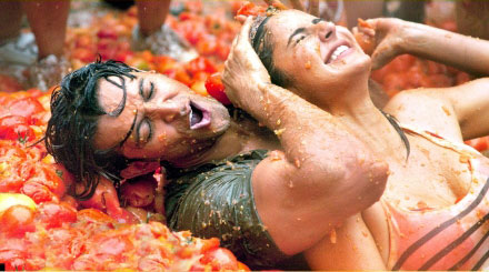Yet, the movie buffs won’t get to witness their affectionate necking and petting in the melody that has Kat and Hrithik wallowing in tomato mash and puree and crushing tomatoes on one another. The melody, shot in Spain with the film's star thrown and tons of tomatoes, manufactured be too sizzling for accessible expenditure, it appears.